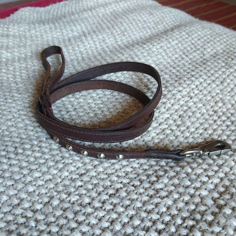 Hieno hopean värinen koiran talutin / hihna strassisilla luu koristeisteilla. Kunto tosi hyvä, vähän käytetty, eikä kulumaa näy. Pituus 130 cm, leveys n. 1.5 cm. Omiaan kaupunki käyttöön tyylinsä tuntevalle koiralle 😁.
