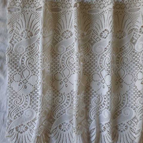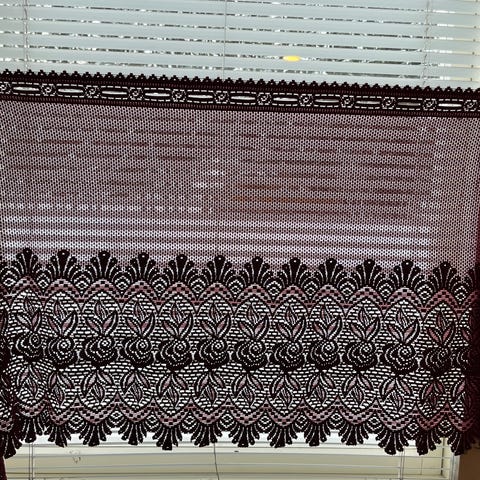 Matalampi alakappa koko 30x170 ja korkeampi yläkappa 60x150. Vahvan tuntuista pitsiä, ei kirkkaanpunaiset. Kuvan väri lähellä totuutta, viininpunaiset voisi sanoa. Tästä nyt edulliset uudet jouluverhot esim keittiöön.