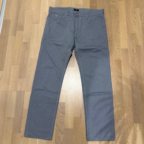 Hugo Bossin farkut 34, itse lyhennetty, lahkeen sisämitta 70cm. Vetoketju sepaluksessa.