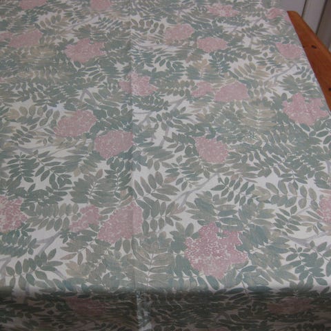 Kuva 3 ja 4 .Kuosi Manteli, koko 140 x 240 cm, 50%pellava,50 % puuvilla, vihreä/kulta, kaikki reunat päärmätty, 60 eur
