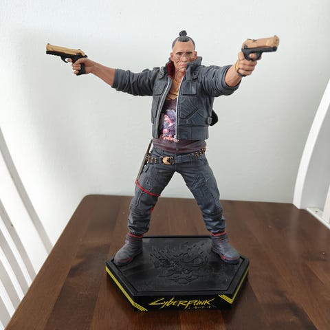 3D printed and hand painted statue from The Witcher's Siri in Cyberpunk 2077 style.