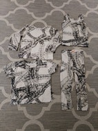 Myydään Vimma lettikuosiset pitkähihainen paita, lyhythihainen, sekä hihaton paita ja leggingsit, kaikissa pohjaväri valkoinen ja kaikki kokoa 80, leggarit hoikemmalle sopivat erityisesti, toppi myös niukkaa kokoa.