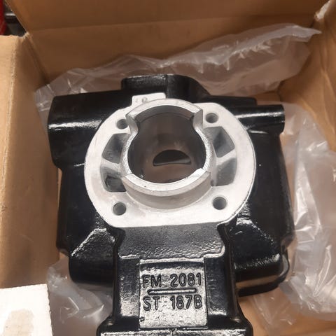 Franco Morini t4 gsa koneeseen Polini 47mm eli 70cc sylinteri ja kansi. 227B. Kromaus ehjä, joskus ottanut hieman osumaa mistä tasoitus jälkiä kanavien reunoissa ja muutama pieni naarmu toisen sivuhuuhtelun alapuolella, ei vaikuta tehoihin. Kierteet hyvät. Am6 läppärunko ja imukaula sopii tähän suoraan. Kannessa lämpöanturi.