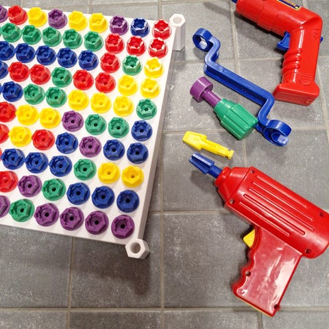 Tyylikäs, tummanvihreä porakone, jonka kanssa on hauskaa harjoitella nikkarointia. Porakoneen mukana tulee kolme erilaista päätä, joilla voi porata erimallisia ruuveja. Mukana on myös kaksi ruuvia ja kaksi mutteria.