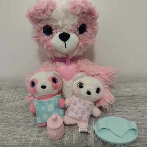 Ihanat,pörröiset ja söpöt pehmot. Jokaisella oma koppi. 2 x tutti sekä yksi harja. Nämä kaverukset saa vaikka reppuun avaimenperäksi. Uudenveroiset (tutit, ovat olleet koirissa langalla kiinni,mutta ne poistettiin).