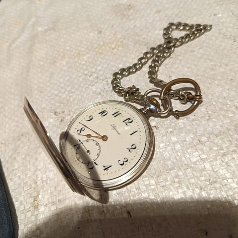 Vintage Leijona taskukello 15 kivisellä koneistolla. Kuoret 0,800 hopeaa, sarjanumero 597295. Toimii.