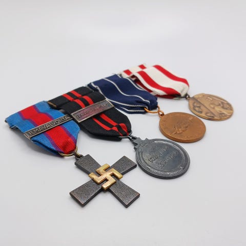 Ilmavoimien muistoristi, Talvisodan muistomitali Ilmapuolustus-soljella, Jatkosodan muistomitali, Kotirintamanaisen mitali.