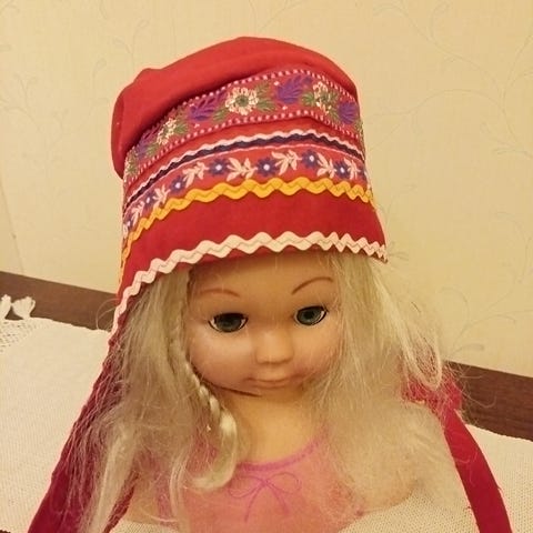 Kuvissa oikean puolimmainen tummanpunainen hattu
