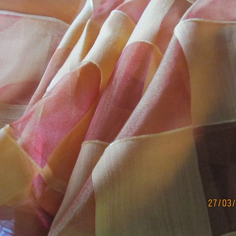 Myydään tarpeettomana verhokappa ja sivuverho, väri vaalea koralli. Materiaali ohutta läpikuultavaa kangasta, jossa meleerattu kuviointi. Ripustus nipsuilla, ei tankokujaa. Reilusti rypytysvaraa myös leveämpään ikkunaan. Entinen koiratalous.