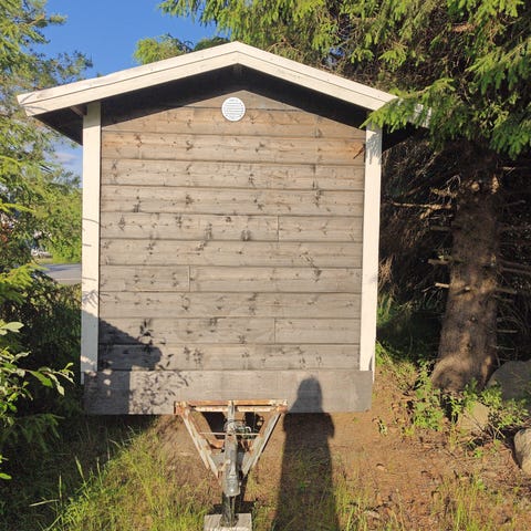 Tämä tieliikennekelpoinen sauna ei yleensä tarvitse rakennuslupaa joten saunan voi halutessaan pitää pihalla, ottaa mukaan mökille, ystäviesi luo tai vaikka uintireissulle!