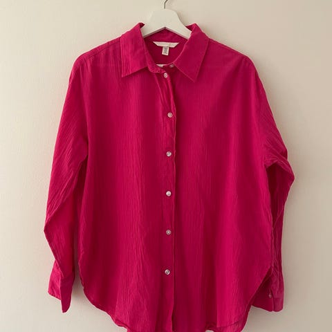 Pusero persikan vaaleanpunainen. Reilua mitoitusta, Kokomerkintä puserossa s mutta on reilua kokoa. Siksi laitoin kooksi paremminkin M. Postimaksu 2,50 lisätään lähetettäessä.