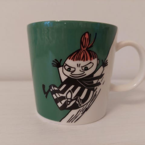 Arabian muumimuki pikku Myy liukumäessä 1999-2007, 2011, kunnossa ei moitteita.
