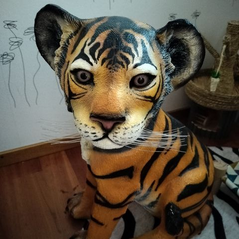 Tiikeri on valmistettu korkealaatuisesta hartsilasikuitumassasta. Käsin viimeistelty ja upeasti maalattu.