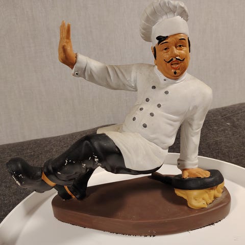 Suuri kokki patsas. Valmistettu laadukkaasta laminaatista ja on täysin sään kestävä.