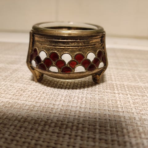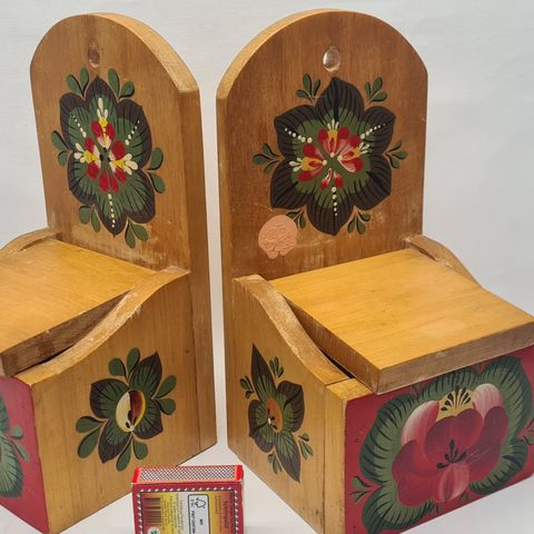 Seinälle kiinnitettävä suola salkkari. Posliinia, puinen kansi. Leveys 12, syvyys 10, korkeus 9(13) cm.