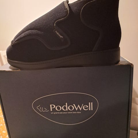 💛 Kenkä-Ralesta 7/24 tilatut mustat PodoWell Altitude tarrajalkineet erittäin turvonneille ja tilaa vaativille jaloille.