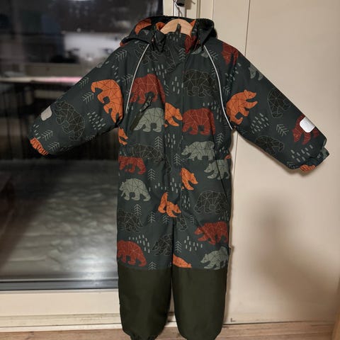 Talvihaalari 98 cm, kiva kuviointi, pingviinit, puput ja karhuja. Vain nouto.