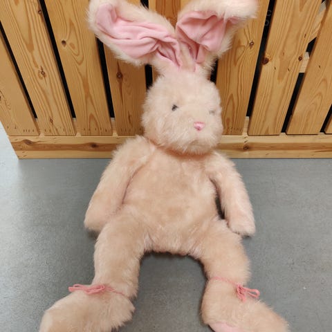 ** Pieni söpö vaaleansininen pupu pehmolelu.
