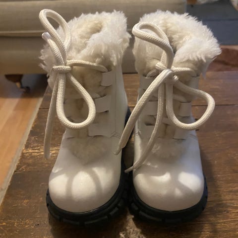 Vuorelliset Lotta & Lassi merkkiset nahkaiset talvikengät. Pohjallisen mitta n 15,8cm. Kummastakin kengästä irronnut yksi koristenasta sekä toisen kengän kärjessä pieni halkeama. Mutta nämä eivät käyttöä haittaa.