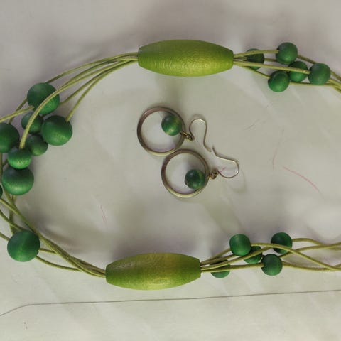 Erilaisia, puisia Kaulakoruja, ehjiä.