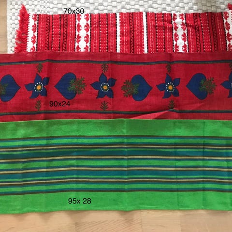 Myydään kuvan kuosiltaan erilaisia kaitaliinoja 1970- / 1980 -luvulta.