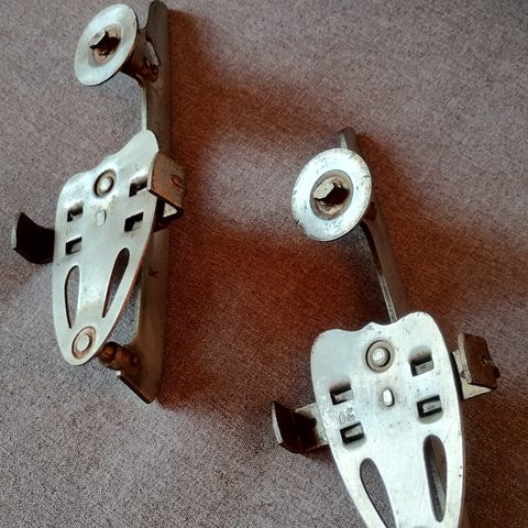 Harvinaiset vanhat luistimet/hokkarit 1950-luvulta. Luistimet mustaa ja valkoista nahkaa, valkoisessa pyöreässä lapussa Karhu-teksti ja olympiarenkaat, nauhat valkoiset, terä terästä. Koko 38. Pohjakaiverrus metallissa: 'W. Rosenlew & Co Pori Mainos Suomi' Finland.