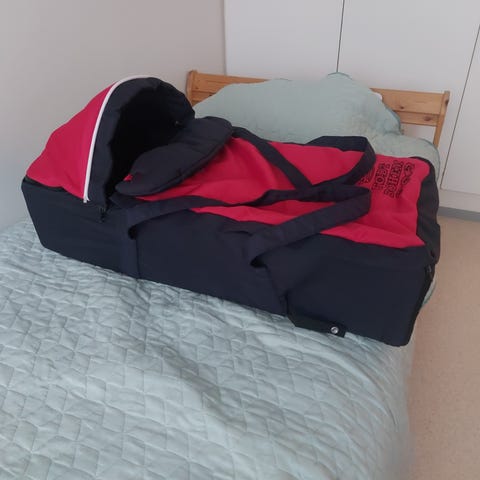 Hyvässä kunnossa oleva Mutsy Slider vaunuista peräisin oleva vaunukoppa.