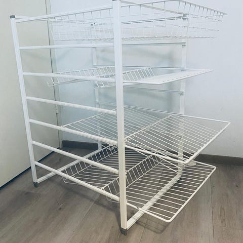 Elfa Classic ulosvedettävä kenkäteline (n. 60 cm leveä, kiskot ~42 cm),