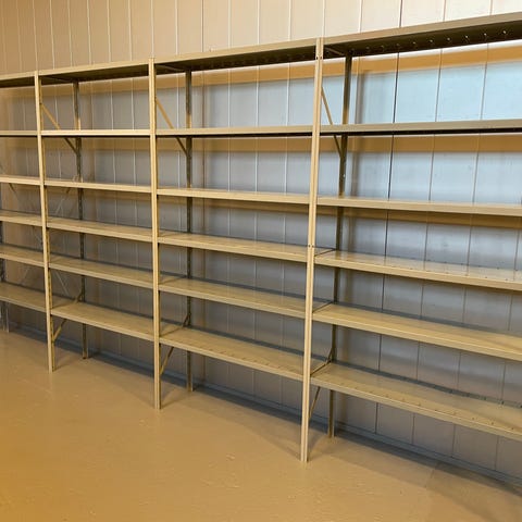 Hylly mitat leveys 350 cm , korkeus 200cm ja syvyys 100 cm , päädyt (2kpl) sinkittyä , vaakapalkit (2kpl) alumiinia ( lavahylly )