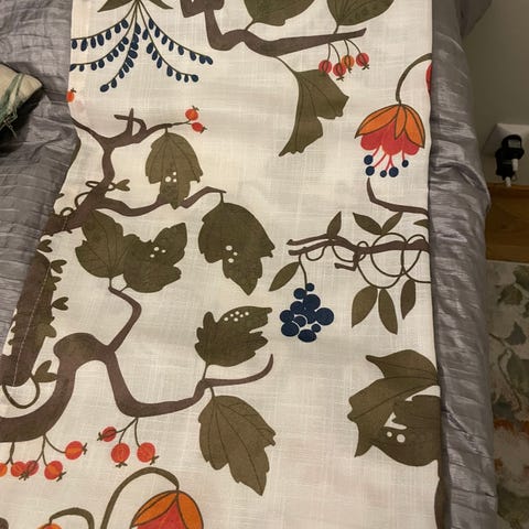 2 kpl itsetehtyjä retro verhoja. Mitat leveys 134cm pituus 176cm. Hinta 15e kpl.