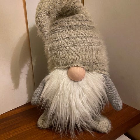 Myynnissä omilla jaloilla seisova joulutonttu. Korkeus noin 50 cm.