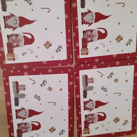 Myydään jouluiset tabletit ja lasinaluset.