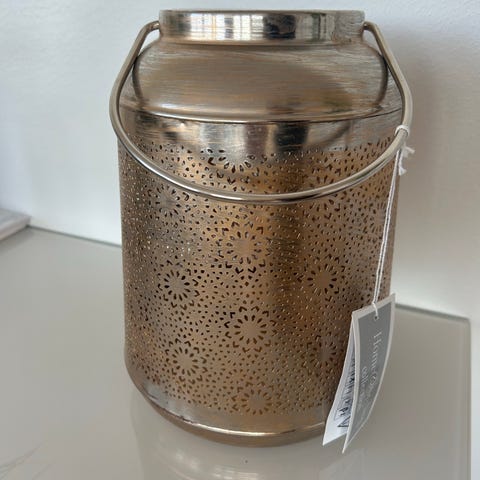 Ulkomailta tuodut lyhdyt, joissa teline tuikulle. Lyhyissä nyt keijuvalot sisällä (ei sis. hintaan).