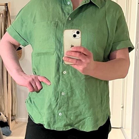 Viimeinen nappi puuttuu, mutta pusero on siisti eikä vaikuta yleisvaikutelmaan ja huomioitu hinnassa. Ei tahroja. Savuton talous, ei lemmikkejä.