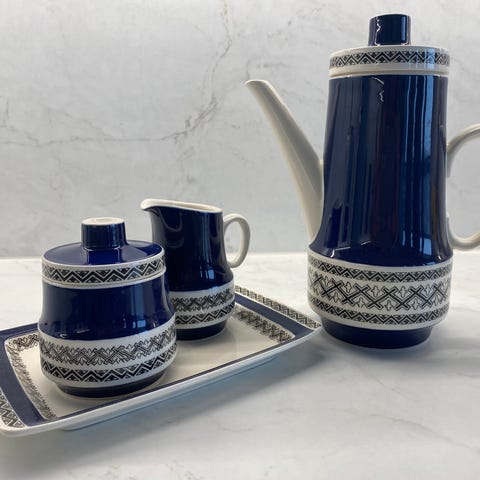 Kuvan käyttämättömät ja ehjät sokerikko ja kermakko vanhaa mallistoa. Hinta yhteensä 20e.