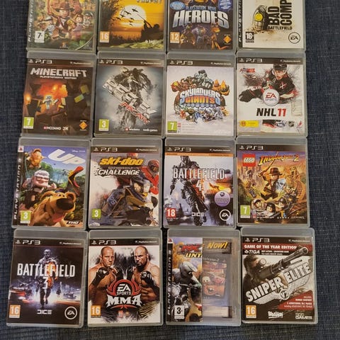 Myydään toimivia PS4 ja PS3 pelejä. Ylärivin pelit PS3 ja alarivi PS4. Hinta 5e/peli