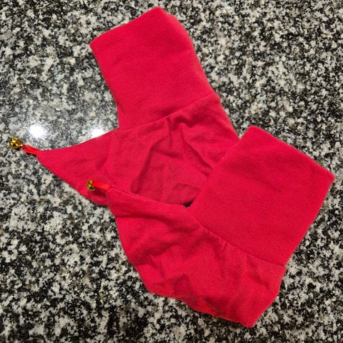 Söpöt joulutossut kulkusilla ja kuuluu pieni kilinä missä lapsi menee.