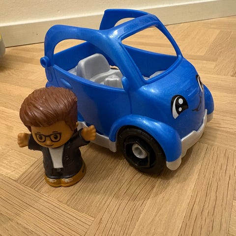 Myydään hieno little people traktori,peräkärry kuski ja kyydissä olevat vihannekset setti