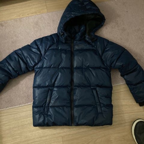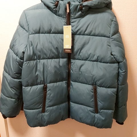 Uusi tummansininen KappAhl toppatakki koko 146 cm. Sivuilla taskut. Päällinen vettä hylkivä.