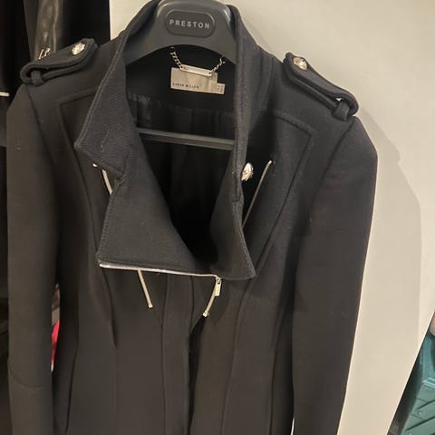 Myydään tyylikäs aito Karl Lagerfeld musta villakangastakki vetoketjulla ja vyöllä, ihana huppu, vetoketjulliset taskut edessä. OVH. 450EUR