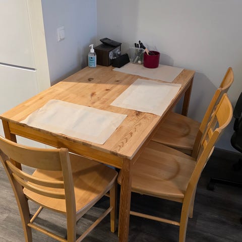 Myydään hyvässä kunnossa oleva JOKKMOKK sarjan ruokailuryhmä. Yksinkertainen ja tukeva ryhmä aamiaisnurkkaukseen tai pieneen ruokailutilaan. Massiivimänty on pitkäikäistä ja kestää lukemattomat perheateriat ja muut arjen puuhat.