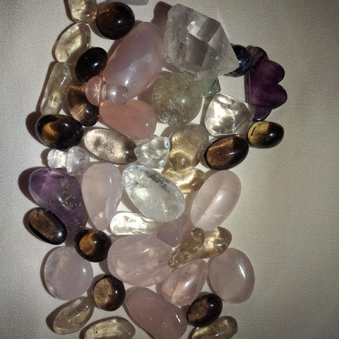 Myydään settinä jalokivet, ruususkvartsia, ametisteja, ja muita jalokiviä.