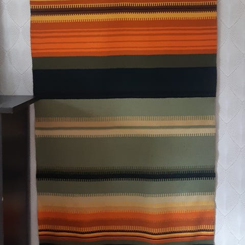 Kaunis villaraanu. Leveys 89 cm ja korkeus 140 cm ilman hapsuja.