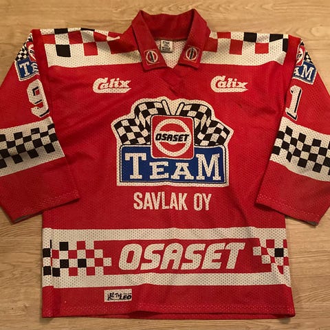 Hyväkuntoinen Lauri Vehniäisen #10 käyttämä Enson Pallon (Varkaus) Kaukalopalloliiga-pelipaita kaukiksen kukoistusvuosilta. Kokolappu leikattu, mutta reilua kokoa, luultavasti XL. Valmistaja HT Sport, kaikki sublimoitu, nimilappu tarrakiinnityksellä. Nouto Varkaudesta tai postitus hintaan 9e, ToriDiilikin käy. Myös muiden Enson Pallon pelaajien paitoja löytyy, kysy! Voi ehdottaa myös vaihtokauppaa jonkin toisen seuran Kaukisliiga-paitaan tai pesispaitaan tai jääkiekkopaitaan.
