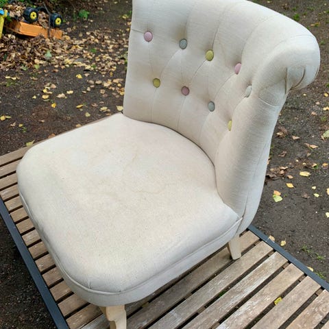 Cars /autot-elokuva teemainen jykevä nojatuoli lapsille. Käytön myötä tullut tahroja kankaaseen, jotka mahdollisesti saa poistettua tekstiilipesurilla. Kulumaa kankaassa tuolin yläosassa.