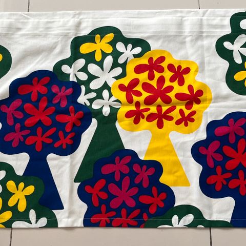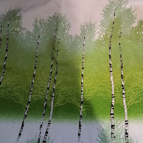Riina Kuikan suunnittelema Omenapuu kuosi. 60x250, ripustus tankoon tai nipsuilla. Kappoja on kaksi, yhden hinta 25 euroa.Käyttämättömä, nouto tai postikulut