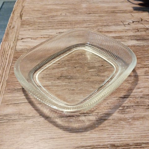 Erikoisella pohjavärillä... onko tuo sitte jotain kellertävää ja todella tummaa lasia. Pientä kulumaa sielä täälä. Soveltuu moneen käyttöön.