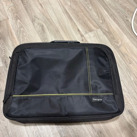 Tekonahkainen läppärilaukku, Oriflame. Laukun koko 28cm x 40cm x 9cm. Läppäritaskun koko 37cm x n.24cm.