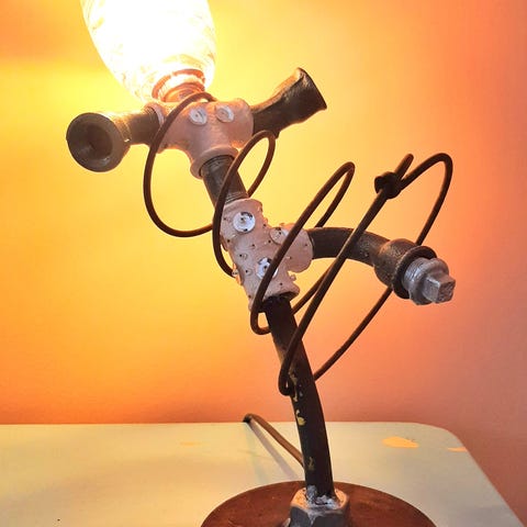 Jokainen meistä tunnistaa nämä retropurkit. Ja tietää että niitä on monenvärisiä. Niille jotka ei tiedä, kerron nyt, että se on Kaija Aarikan vuonnna 1973 suunnittelema Riemuraita. Nyt tämä vanha punainen Riemuraita purkki sai uuden elämän osana Riemu-Raija-Valaisinta. Raija on vissiin käynyt lonkkaleikkauksessa, koska hänen tasapaino ei riitä viinipullon pitelemiseen, mutta sitä kevyemmät kuormat onnistuu Raijalta ihan hyvin.