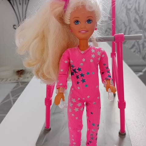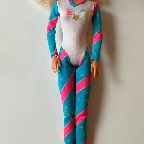 Gymnast Barbie taipuvilla nivelillä 90-luvulta. Nenässä pieni vaurio (kts. kuva).